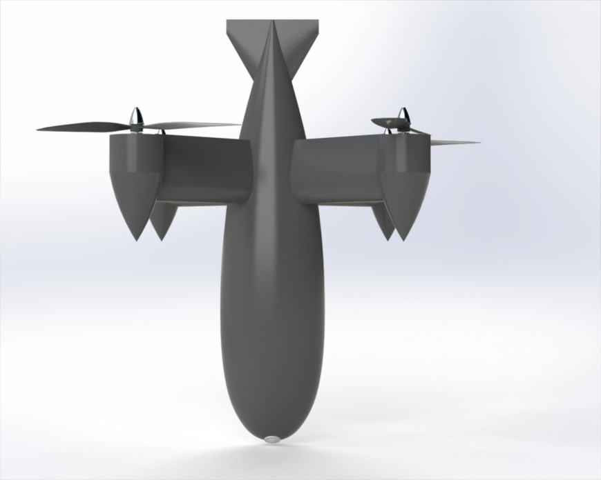Aerodynamic profile inspired by missile-like layout with forward-mounted dual propellers